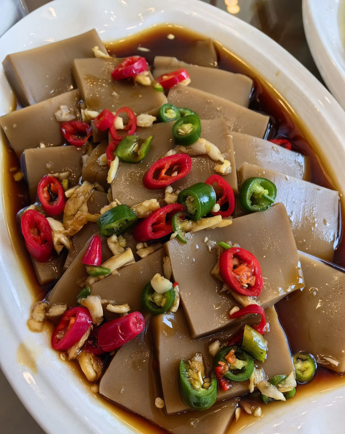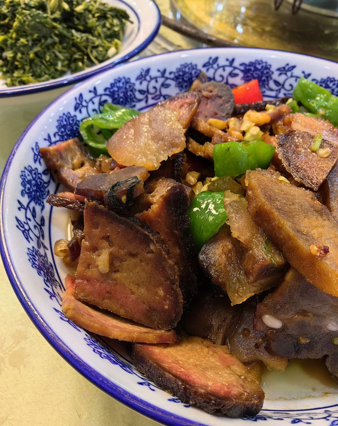 红豆腐也是当地的特色,说是豆腐,我觉得和豆干的坚韧程度相当,哈哈!