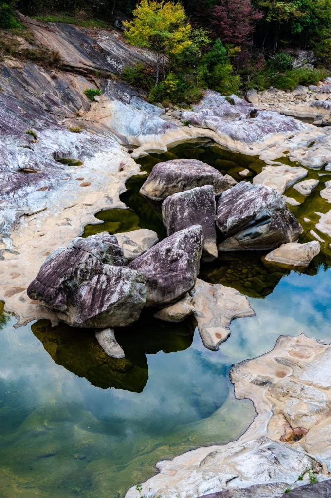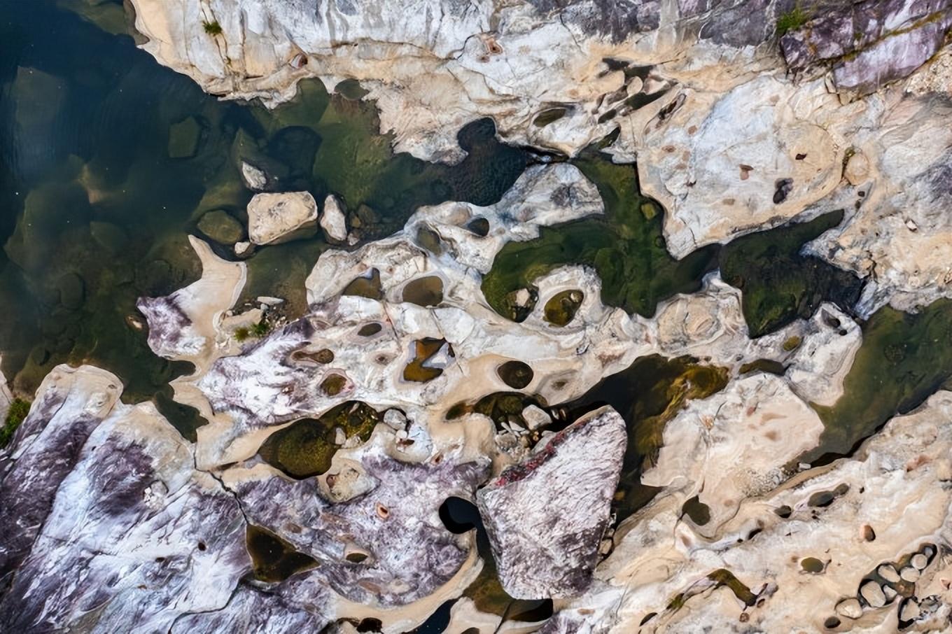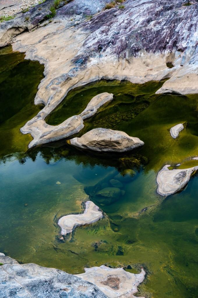 燕子河大峡谷的水量也不太足,怪石嶙峋让我觉得有点来到外太空其它星球的地表一样。为了安全起见,即便是水量少,游客也是不能走到峡谷下面去的。不过这样的风景就是适合站在高处看,即便是笔直的一条峡谷,也能做到移步换景的状态。