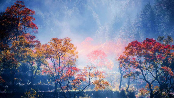 安徽金寨县地处大别山腹地,是鄂豫皖三省交界的地方,大别山山脉贯穿全境。金寨县森林密布、群山叠嶂、河湖纵横,除了境内有大批的旅游景点景色如画之外,即便是在丛山峻岭中,放眼四望也皆是景色,一年四季各不相同,是旅游者的天堂,户外采风者的乐园。