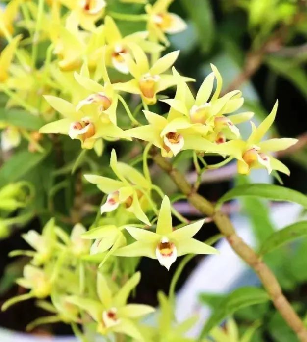 金寨所产的石斛鲜条咀嚼时粘粘,味甘甜。比起石斛鲜条,每逢夏季,成片的石斛花开,远远望去,弥眼金黄。新鲜的石斛花不仅好看,泡水喝更有明目之效。