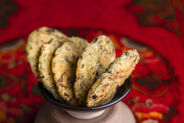 质嫩味鲜的蒿叶与腊肉丁搭配,和着米粉被揉成圆扁状,炸得金黄的外壳香酥无比,里面的腊肉直往外冒油,这就是六安的特色民俗美食——“蒿子粑粑”。一口咬下外焦里嫩,软糯绵长,蒿子的清香与腊肉的咸鲜相互渗透,一路从味蕾飘到肠胃。