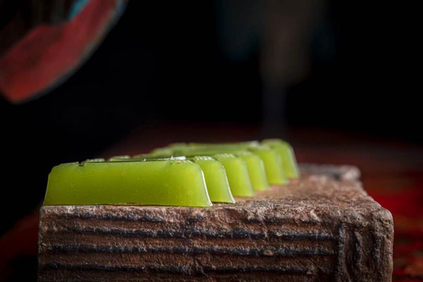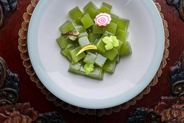还有道小吃与金寨观音豆腐颇有几分相似,叫六安米斛仙草糕,其原料米斛是霍山石斛的一种。在大别山北麓的霍山,悬崖峭壁间的石斛汁液饱满。来到经开区的九仙尊石斛文博园,这里的仙草糕加入了鱼胶粉、蜂蜜、桂花蜜,成品色如碧玉,咬一口甜蜜软糯,加上米斛食补的功效,正适合成为“皖”美下午茶。