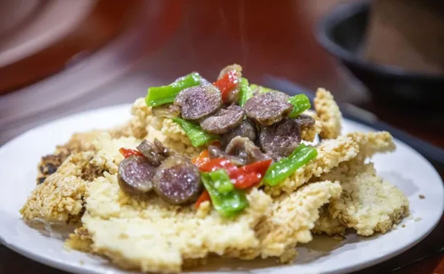 冬季来金寨旅行,点上一份来自农家自制的香肠锅巴,一口香肠,一口锅巴,别提多幸福了。浓郁的咸鲜和甘醇,透着风干日晒的香气,那种色香味俱全的诱惑,至今都无法抵挡。