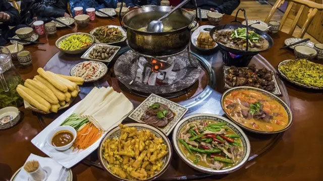 作为金寨的招牌江湖菜,每一口锅都是经典。现在在金寨一年四季皆可“吊锅”,且“一锅纳百味”,锅中的原材料从山珍拓展到海鲜,五花八门,数不胜数。三五友人围桌而坐,尝吊锅、品美酒,小火融融,锅内热气腾腾,别有一番滋味在心头。