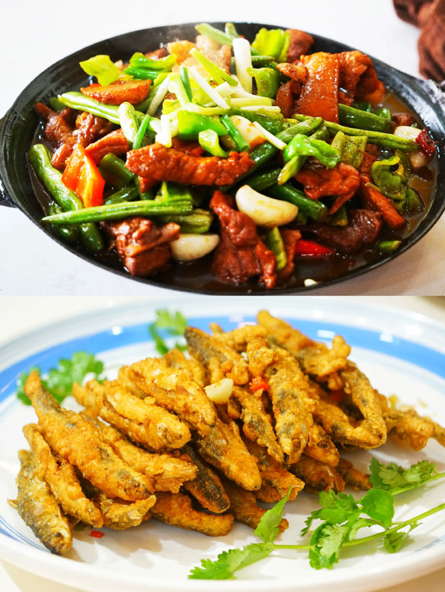 油炸野生河鱼:小河鱼是野生的,肉质鲜嫩口感好,油炸出来酥香味美。