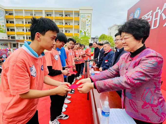 在捐助活动中,爱心企业家们共捐助了爱心助学金22000元,捐赠了价值83000元的书籍、衣物、篮球、线上学习卡等物资以及全年50册《少儿画王》杂志。活动最后,学生代表们合唱一曲《八月桂花遍地开》,表达了对爱心企业家及各位领导们的感谢之情。