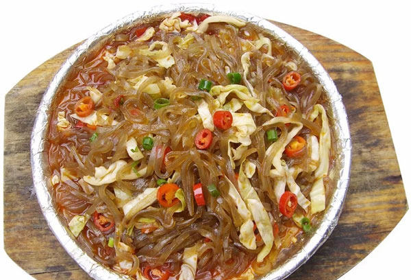手工刨好的红薯粉丝晶莹剔透,摸上去光滑柔嫩,也很少断丝。味道也是韧劲十足,口感是机器加工所不能比拟的。每年春节,粉丝是大别山锅子必备的烫菜,如羊肉粉丝、牛肉粉丝等。