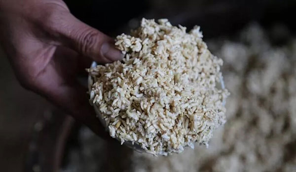 在大别山金寨今年流传着这样一句民谣:“老米酒,蔸子火,除了皇帝就是我。”山里人在寒冬腊月里,只要有酒有肉有炉火,就是简单的幸福。如有客人,主人家少不得要拿出老米酒来。老米酒是山里人自己用糯米酿制的。一般人家每年都要拿出一、两百斤糯米来酿制老米酒的。酒酿好后,还要放在酒缸里封好窖藏一段时间,等糯米全部化成酒后才饮用。